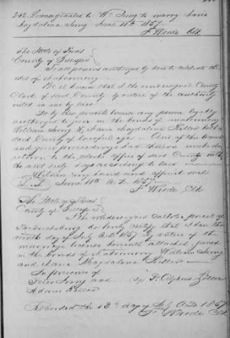25. "Texas, County Marriage Index, 1837-1977," database with images, FamilySearch (https://familysearch.org/ark:/61903/1:1:VXGC-LHD : 22 December 2016), William Jung and Maria Magdalena Keller, 09 Jul 1857; citing Gillespie, Texas, United States, county courthouses, Texas; FHL microfilm 982,801.